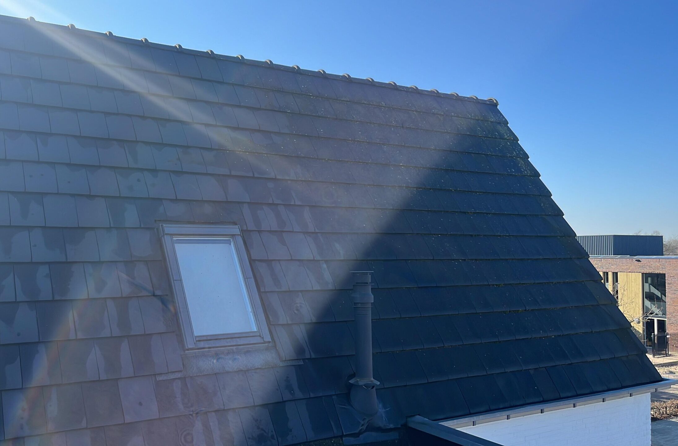 Impregneren zorgt ervoor dat uw dak beter bestand is tegen vuil- en wateropname. Het creëert een beschermende laag die voorkomt dat mos, algen en andere vervuiling zich snel hechten. Hierdoor blijft uw dak langer schoon en vermindert de kans op schade door vocht, wat bijdraagt aan de langere levensduur van uw dak.